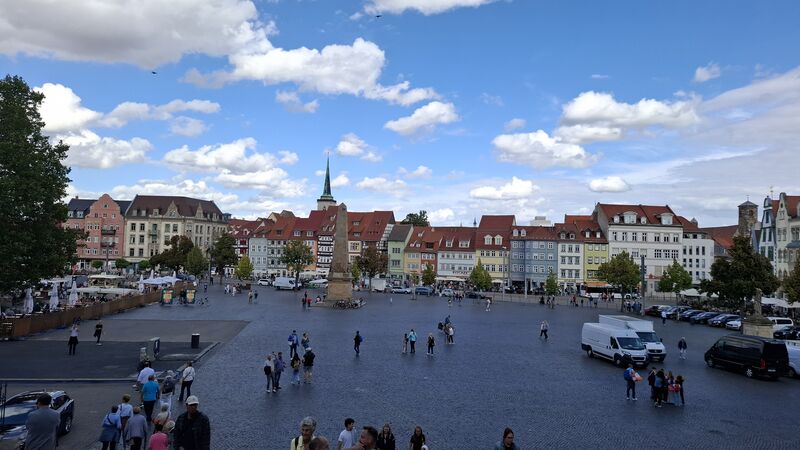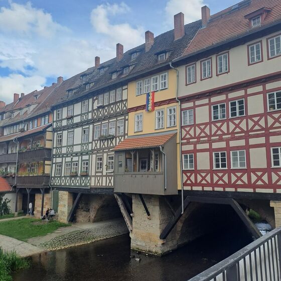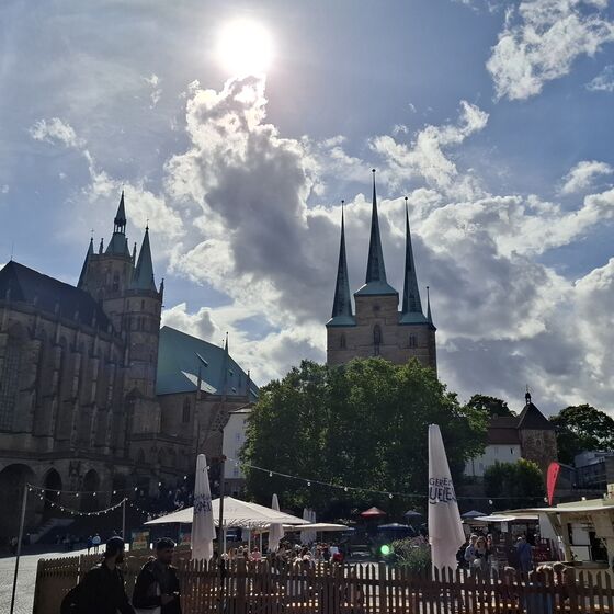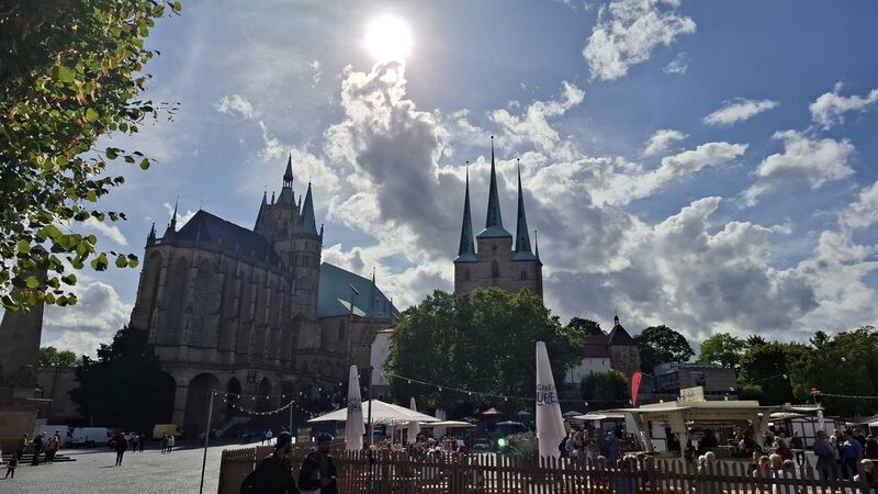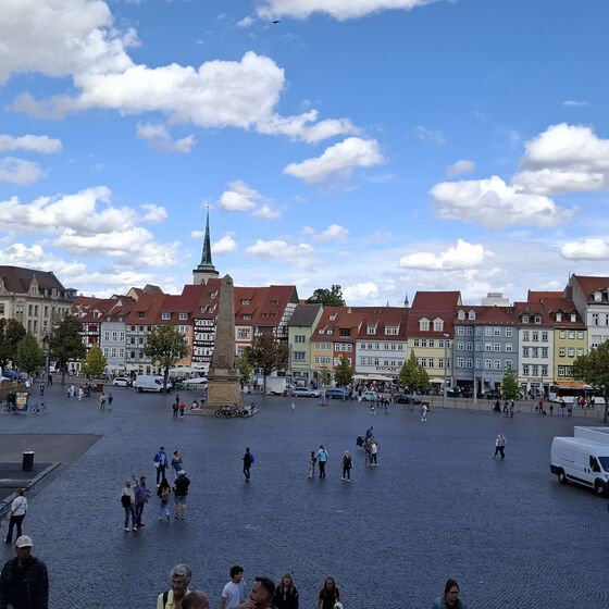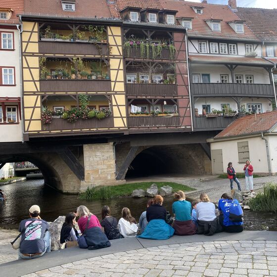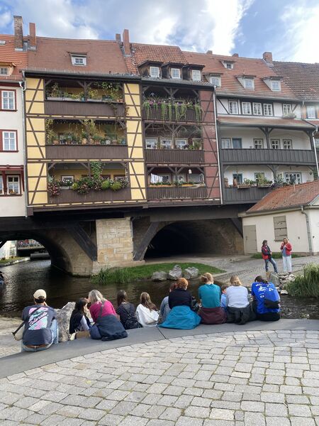 Den Samstagnachmittag haben wir in der Erfurter Altstadt verbracht. Wir haben das Rathaus und den Dom besichtig, gemeinsam Pizza gegessen und freie Zeit gehabt, die Stadt zu erkunden. Dabei waren wir auch auf den Spuren der KiKA-Figuren unterwegs. Anschließend haben wir uns auf der Krämerbrücke getroffen, um gemeinsam ein Eis zu essen und gestärkt zurück in die Jugendherberge zu laufen, um dort weiter zu planen.